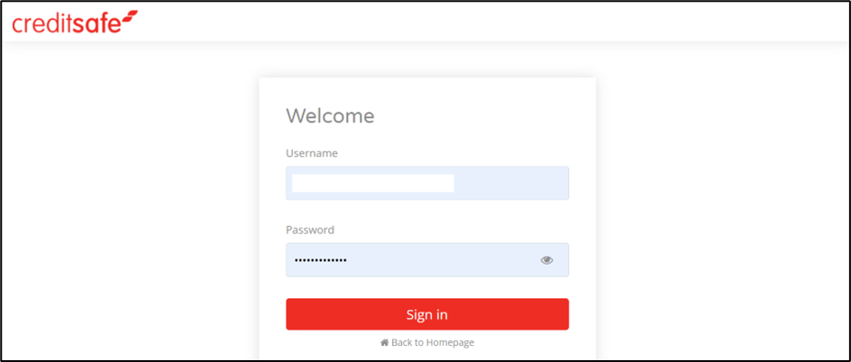 Je krijgt nu een inlogpagina te zien. Vul hier je Creditsafe-inloggegevens in en klik op ‘Aanmelden’. Na het inloggen verschijnen er verschillende opties, die in dit onderdeel kort worden toegelicht.