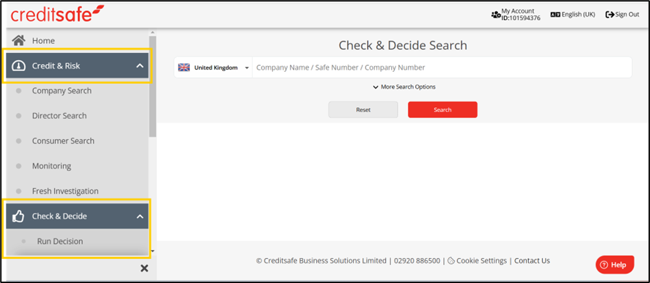 Kies op het ‘Home’-tabblad in het menu aan de linkerkant voor Check & Decide.