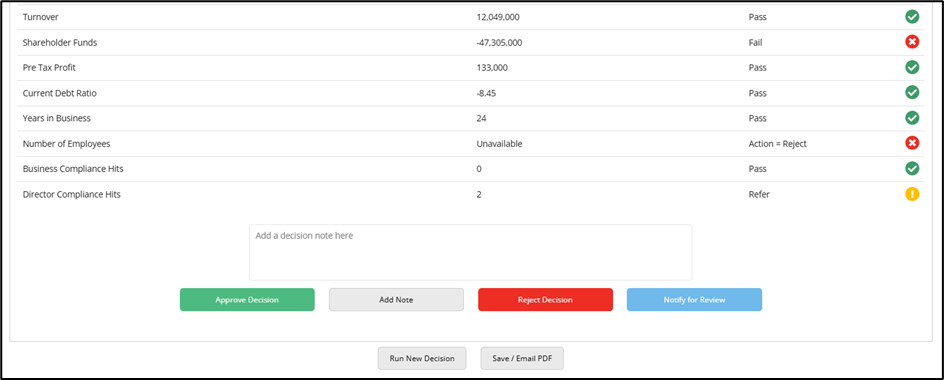 In dat geval moet de gebruiker handmatig een e-mail versturen. Dit doe je door via ‘Beslissingengeschiedenis’, ‘Doorgestuurde Beslissingen’ of ‘Enkele Beslissing Bekijken’ naar het betreffende record te gaan, en daar op ‘Melden voor Review’ te klikken.